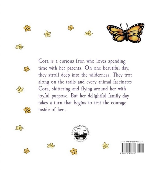 Cora is a curious fawn who loves spending time with her parents. On one beautiful day, they stroll deep into the wilderness. They trot along on the trails, and Cora finds other animals fascinating. They skitter and fly around her with joyful purpose. Every unique sound catches her attention, stirring her curiosity to discover just where that sound came from. But suddenly her delightful family day takes a turn that begins to test the courage inside of her…