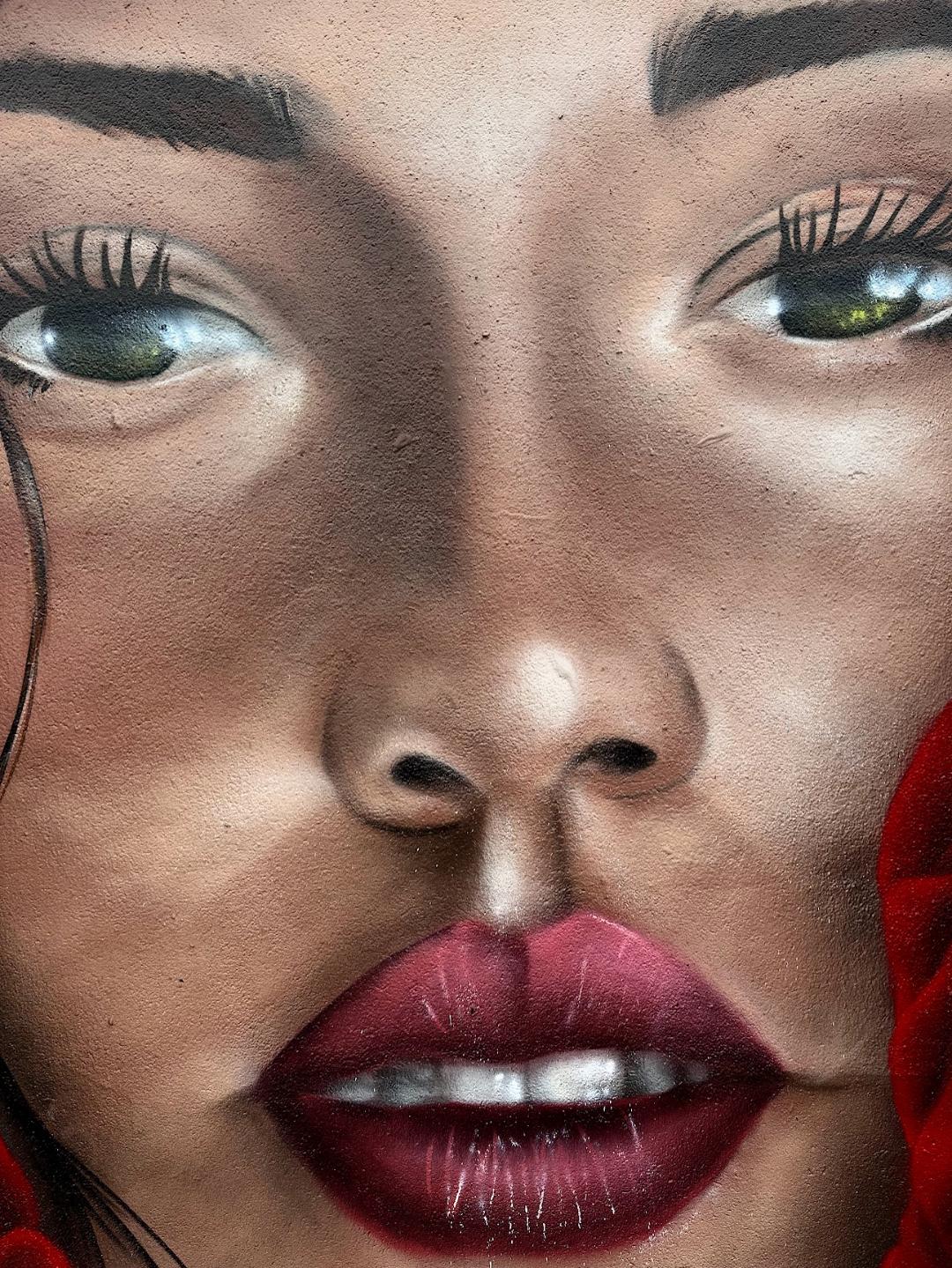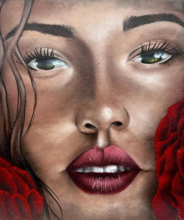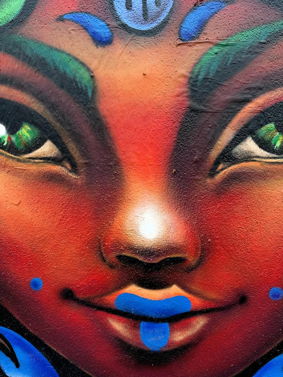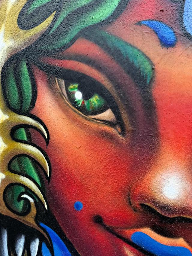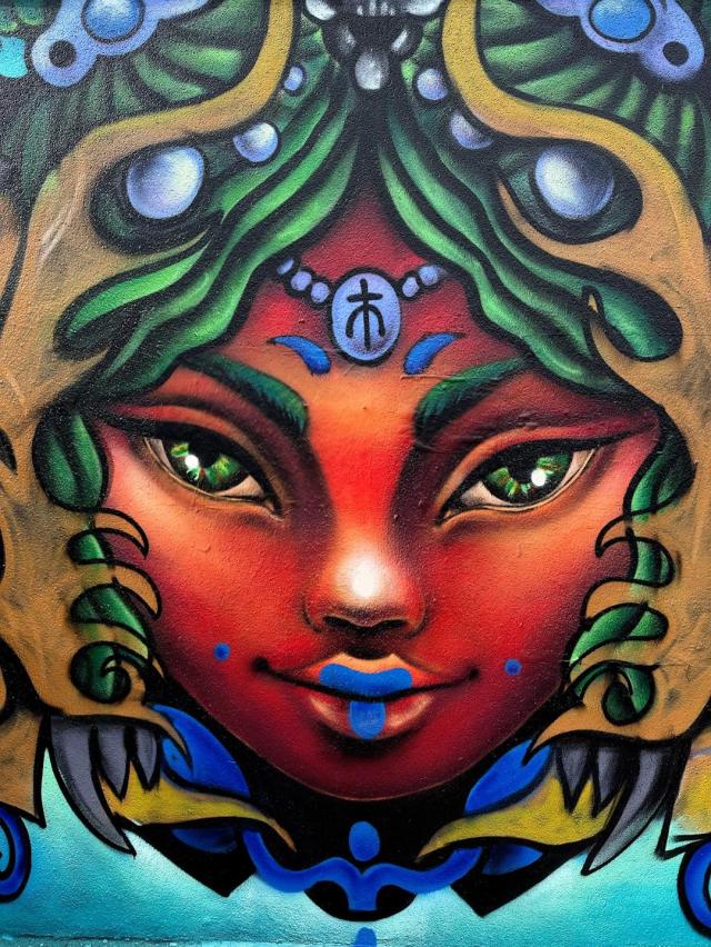 Yvette – Oh and the other elements/principles in that photo street art – we have the soft blue going across the body into the green – giving us this horizontal split that syncs with the body – other line designs stand out – like the hair being in sync with the background and other line design.