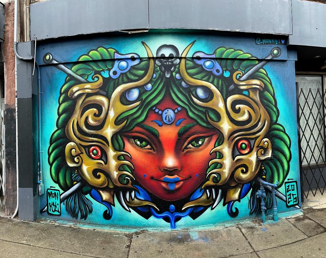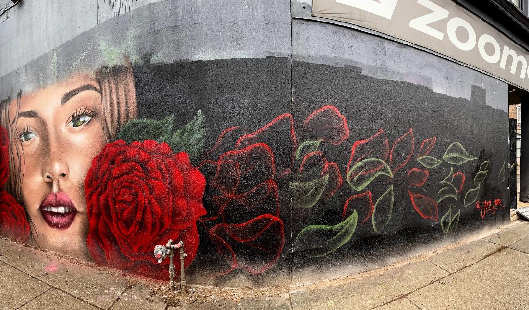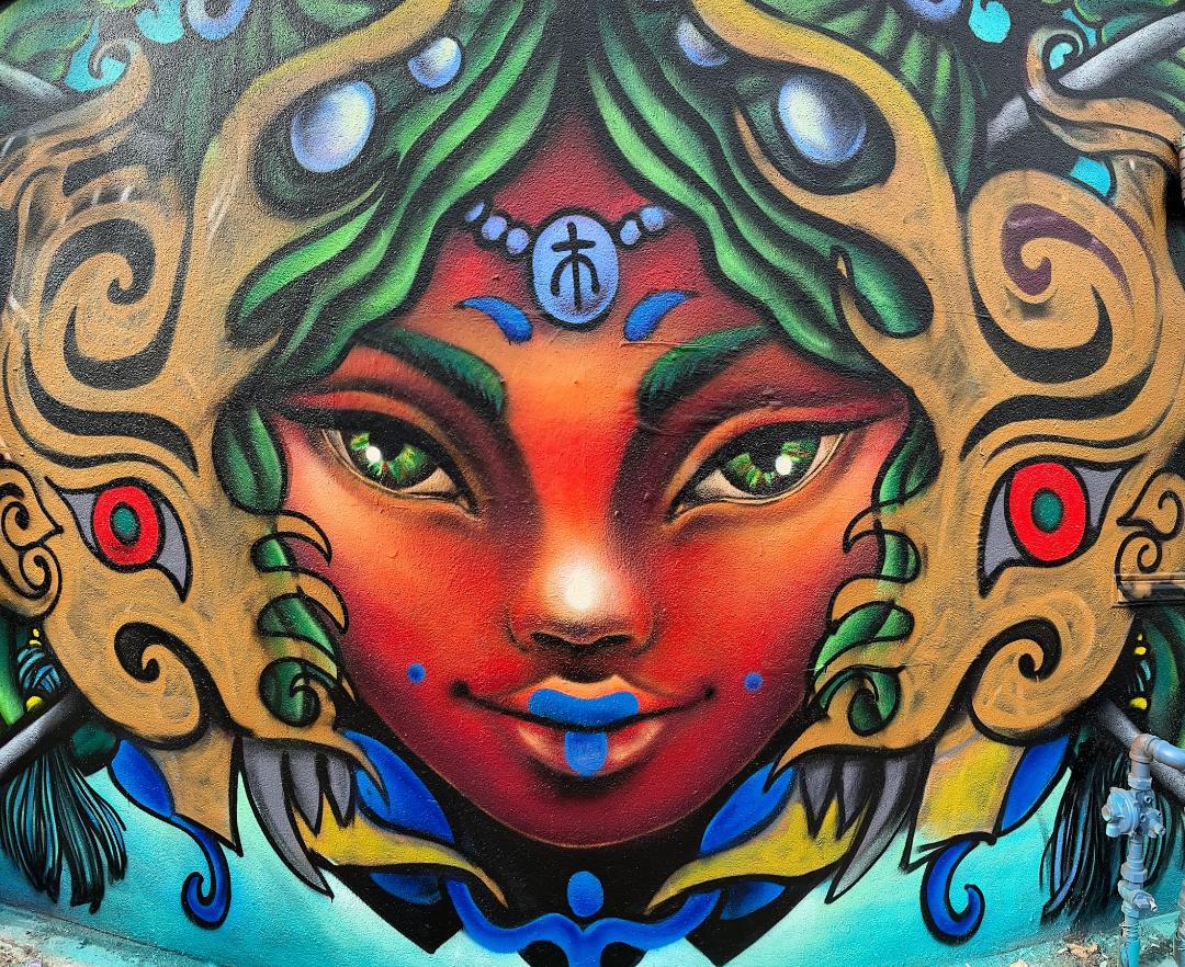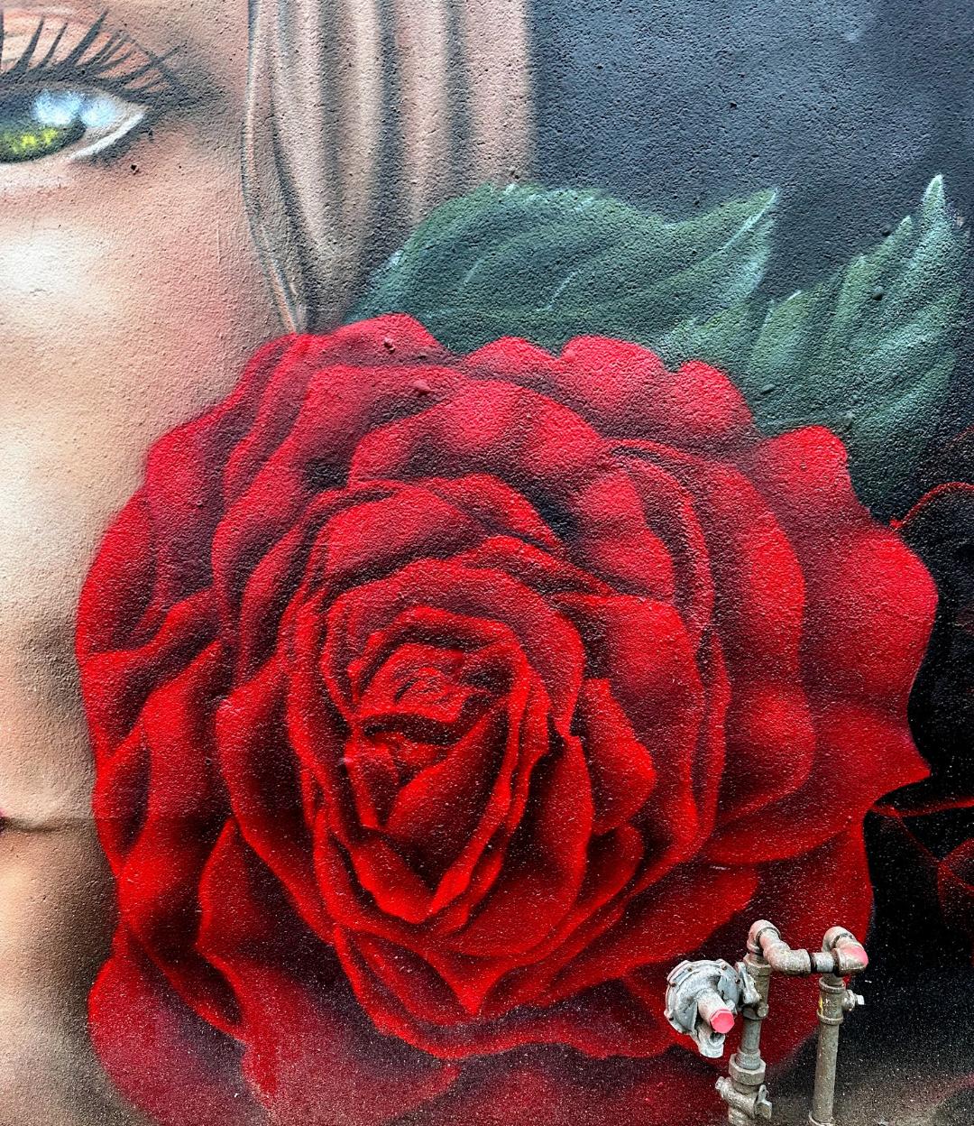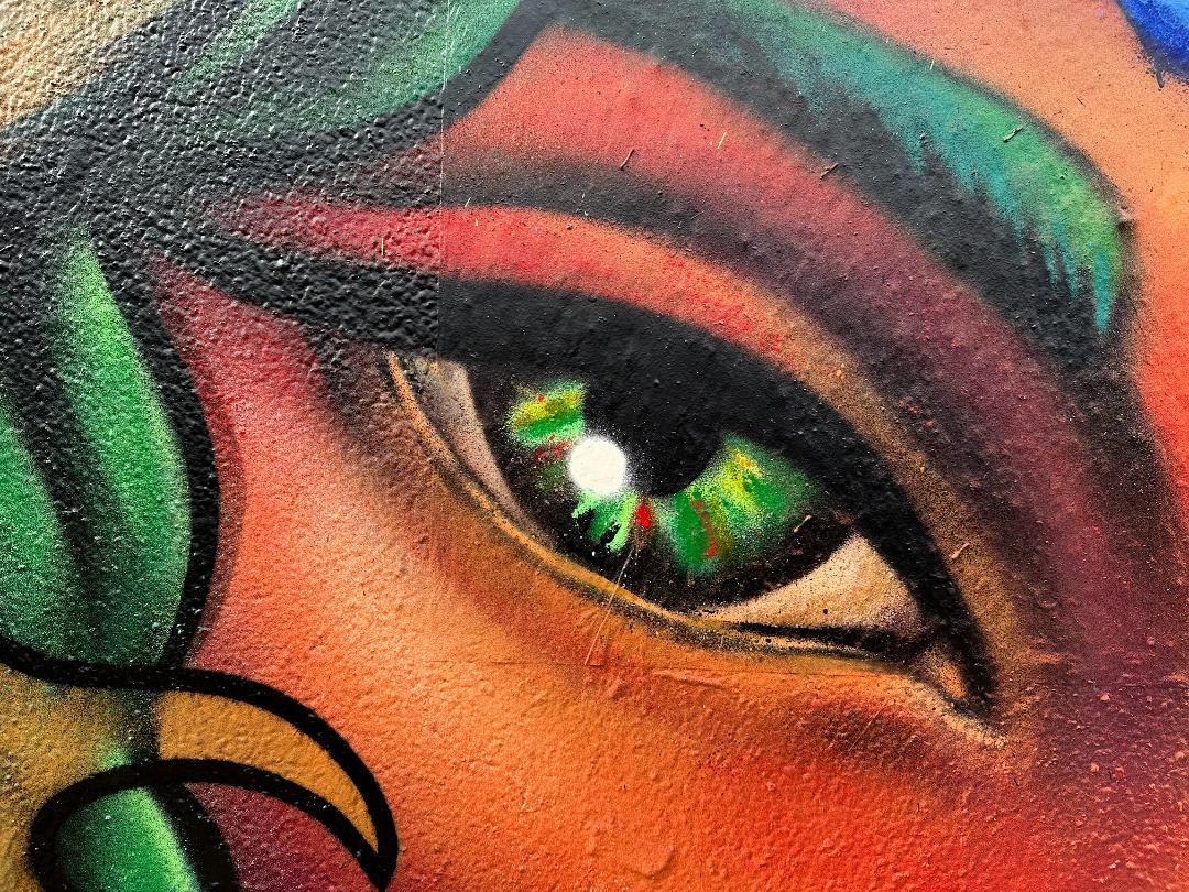 Yvette – Oh and the other elements/principles in that photo street art – we have the soft blue going across the body into the green – giving us this horizontal split that syncs with the body – other line designs stand out – like the hair being in sync with the background and other line design.