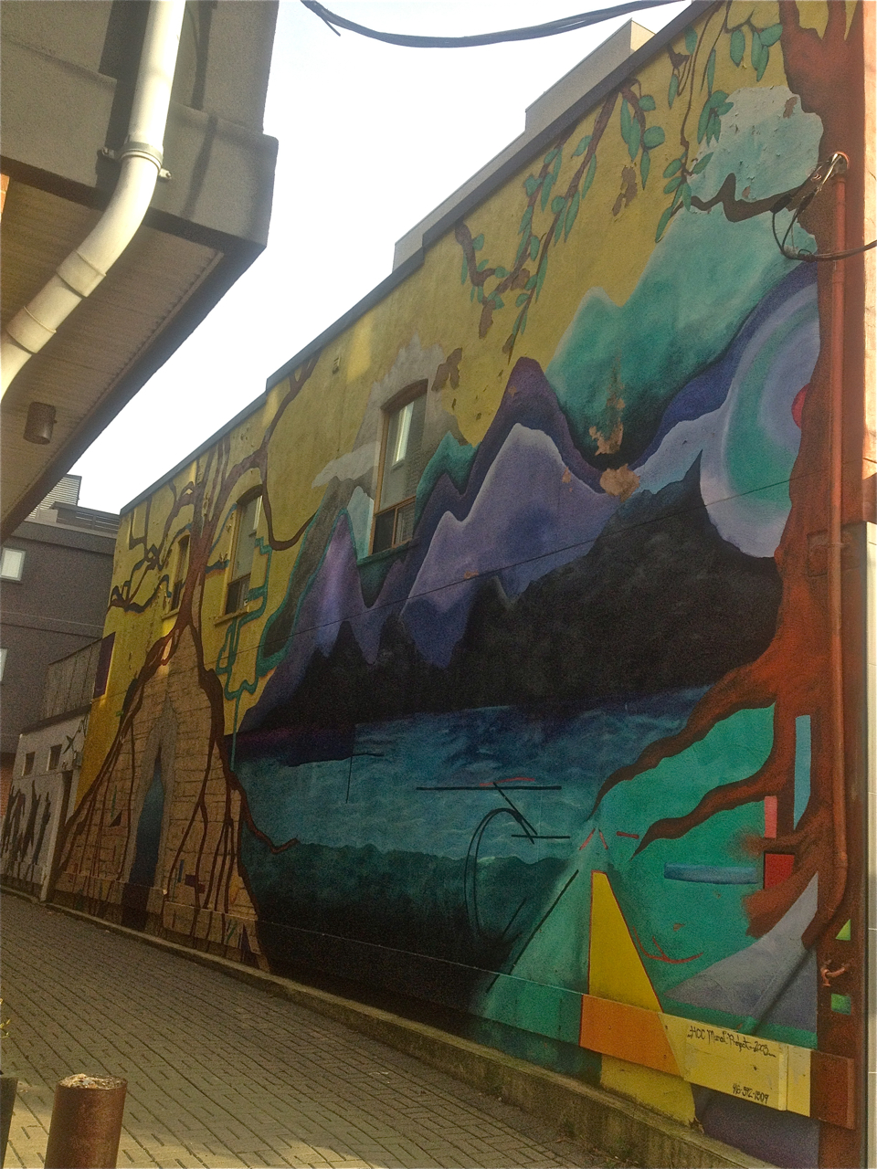I’m standing on Roncey, looking along the narrow walkway into the residences. You can kind of see they guys down at the end.