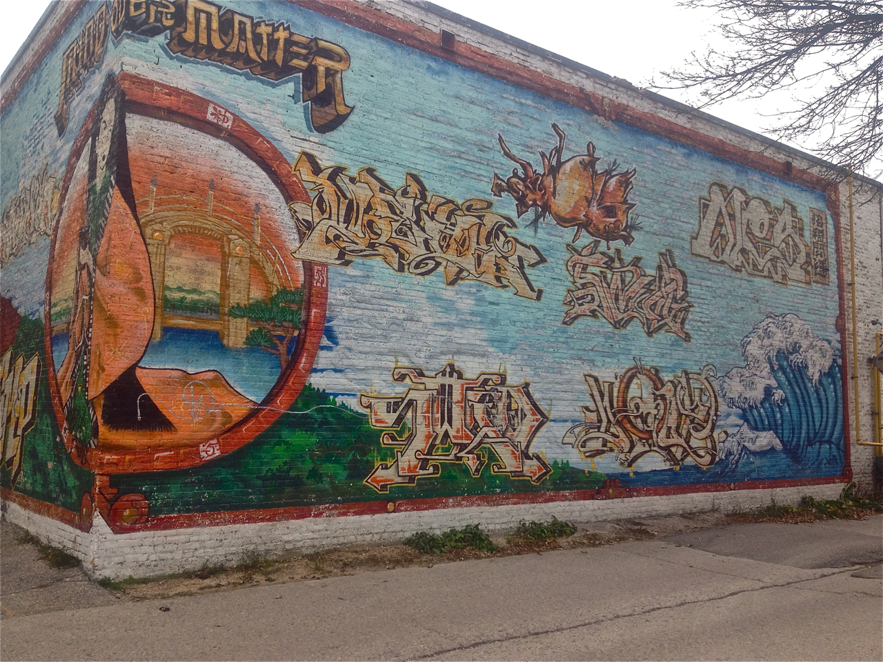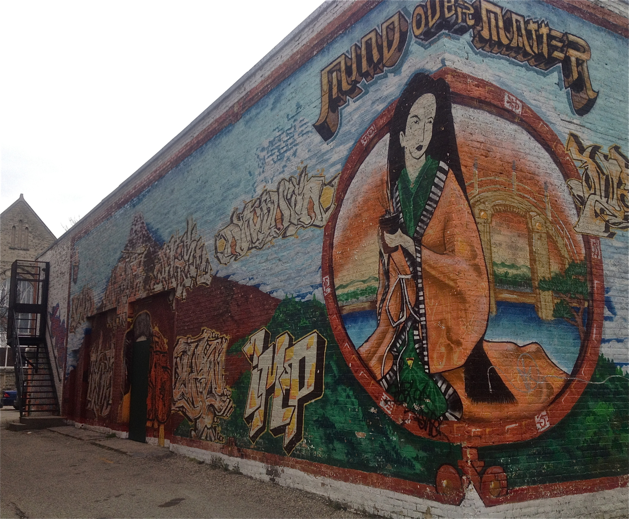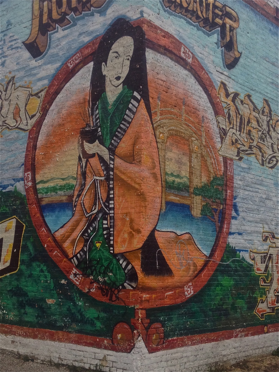 She’s a bit chipped up from the harsh winters since 2006 when she was painted by an unknown artist, but she’s still quite wonderful. I hated to leave, but Sherrie had me on 20 minute allotments per mural.