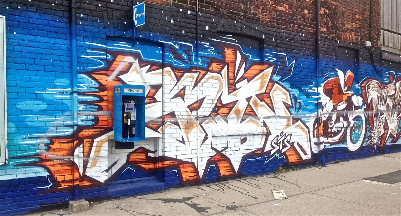 On the Logan Avenue side of a convenience store at Gerrard Street and Logan is a fresh Graffiti Mural.
