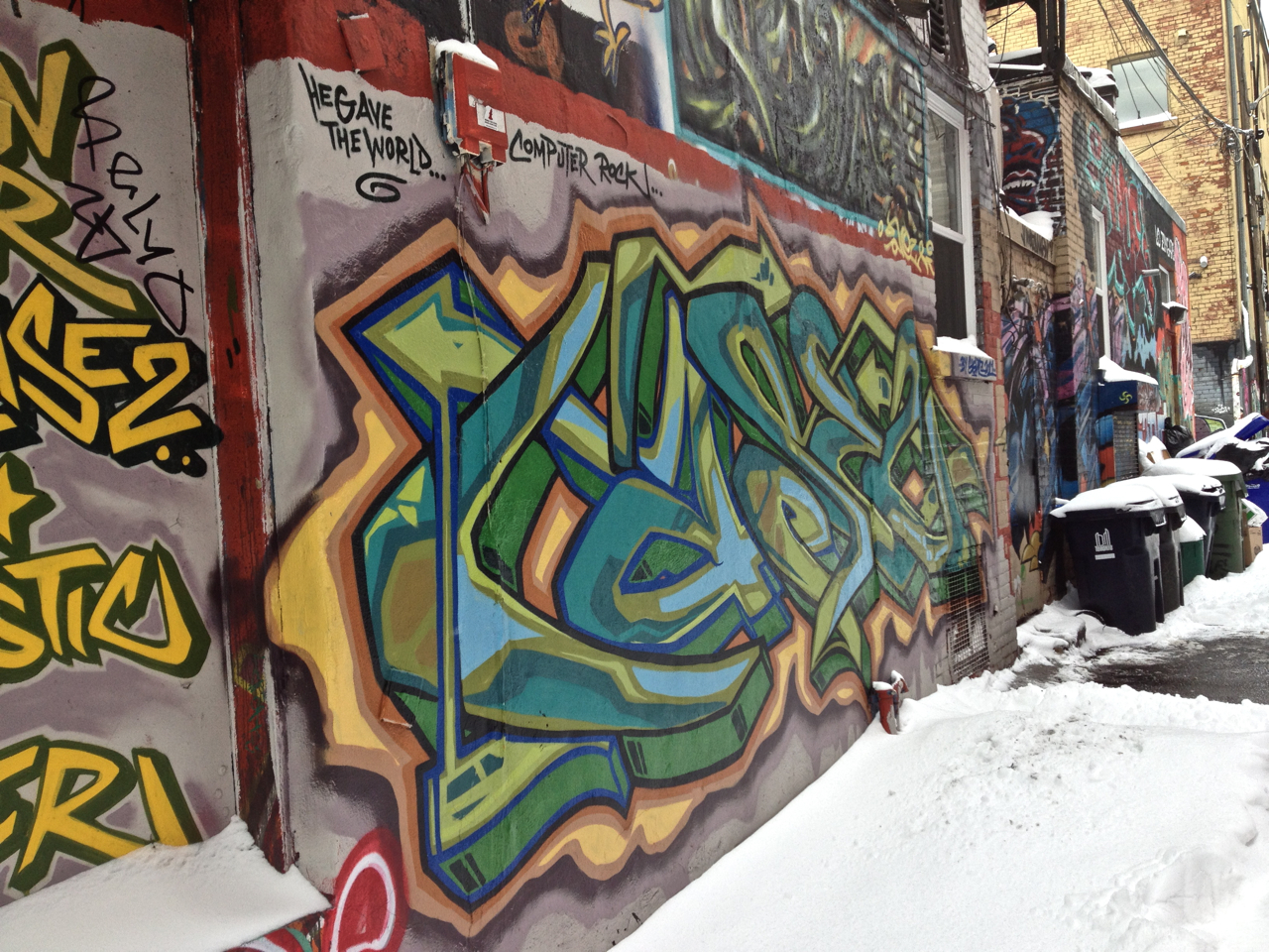 Lo Zingaro On December 17, 2013 By ResaIn Alley Gallery, Graffiti Art, Graffiti Mural An alley corner where Graf Art meets Taggers – Queen W. south side. Not my best pics, but it was -20 C, and I was in a hurry, headed somewhere. mmm Pics taken by Resa McConaghy, on December 15, 2013 Toronto, Canada Rate this:Share this: Click to share on Bluesky (Opens in new window) Bluesky Like Loading... Related