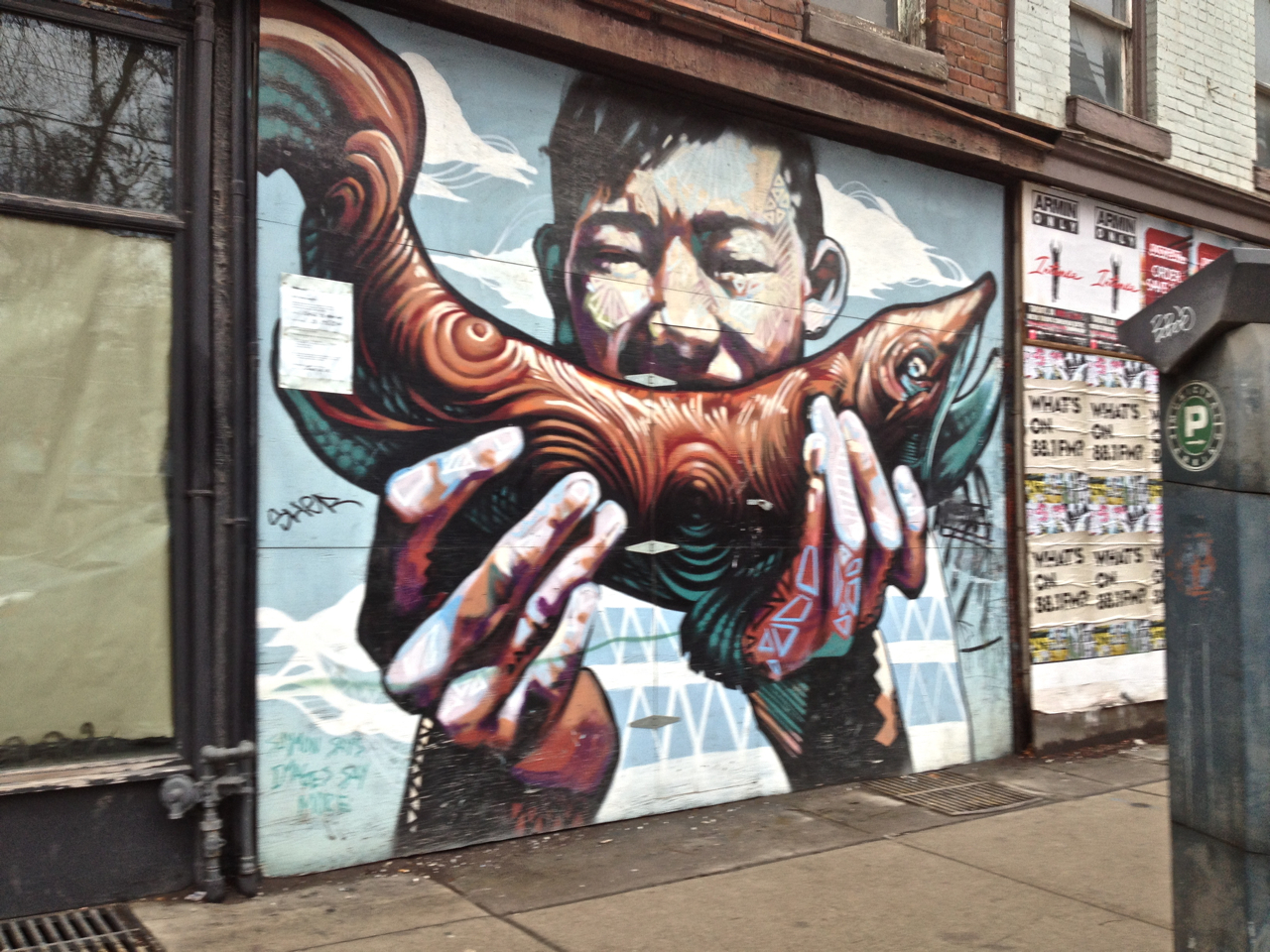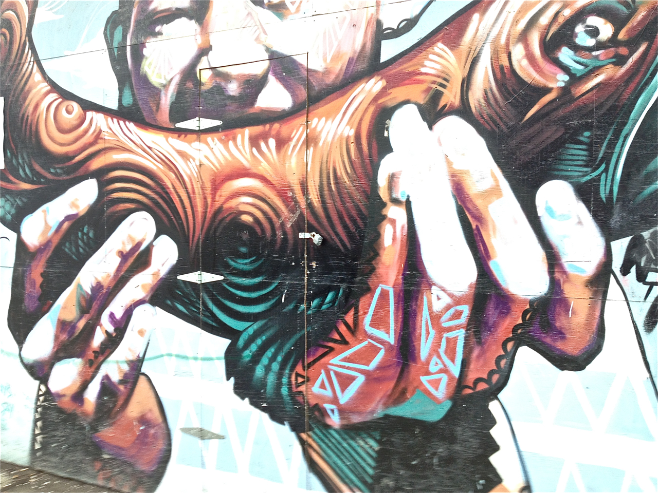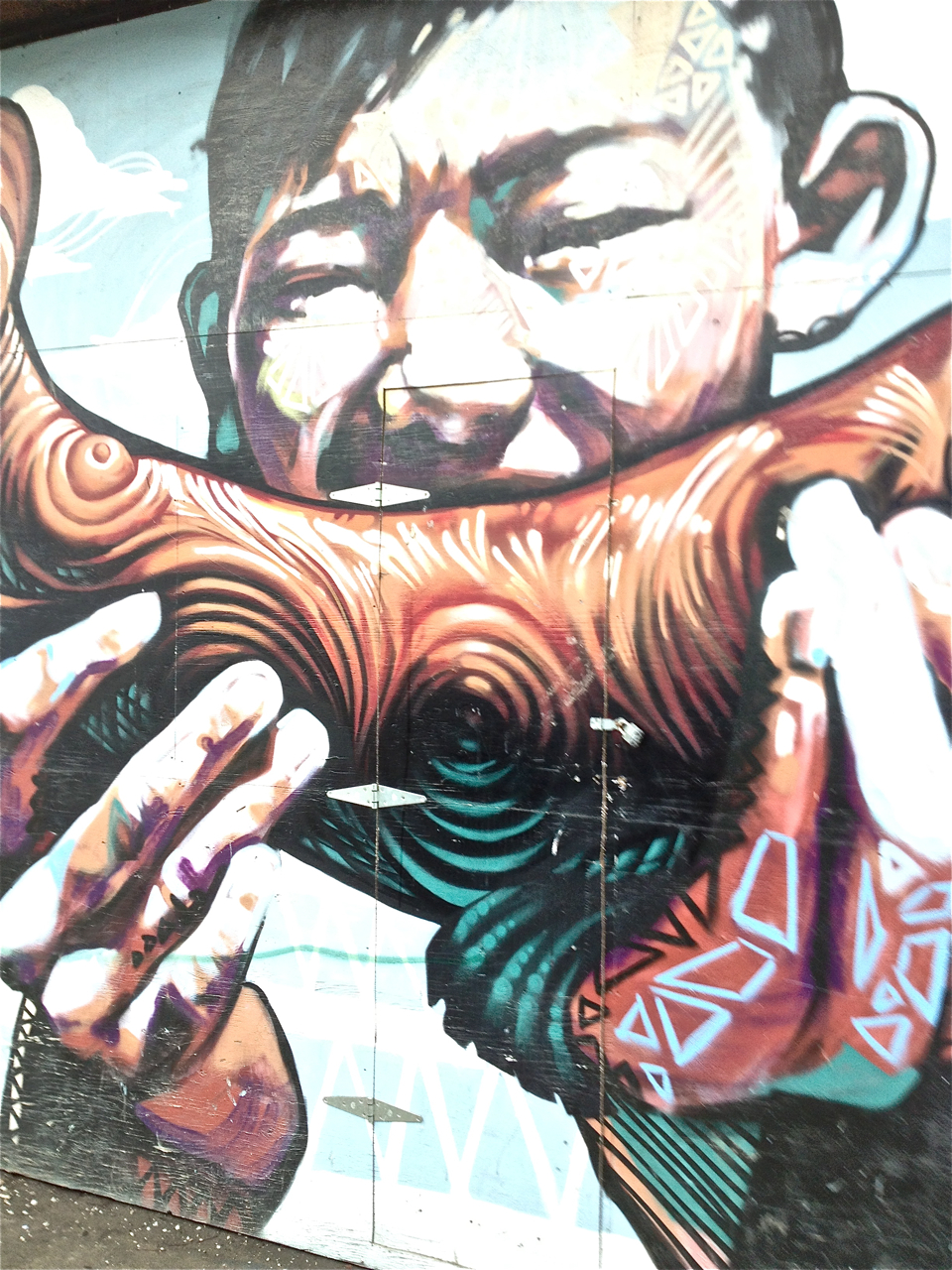 Good thing I went back. The white paper on the mural is a notice of demolition.