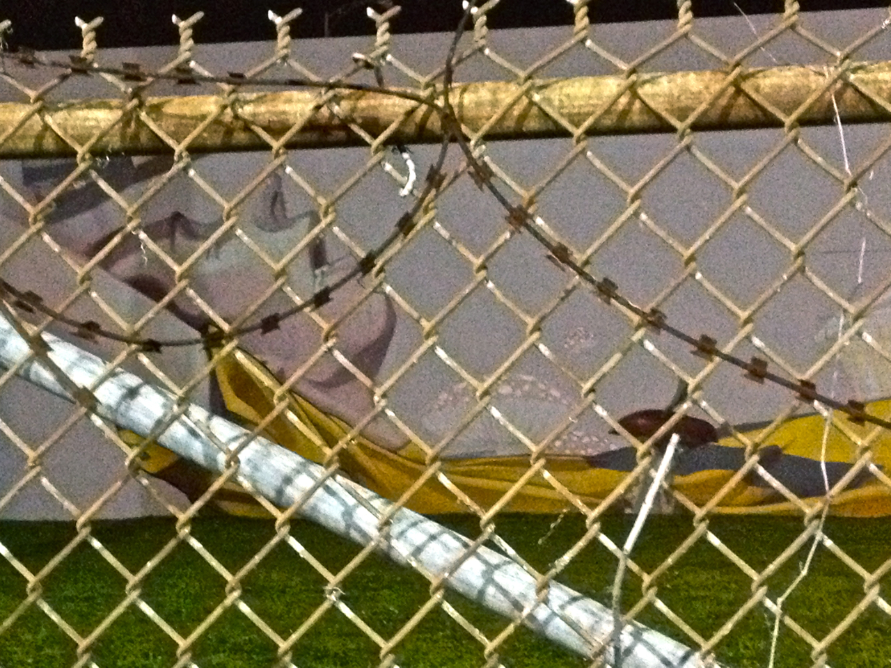 This piece looks awesome with the backdrop of the contrasting wall, and of course the fence in the foreground, as it gives it a rather distinct feel, likened to a prisoner dreaming his way into freedom.