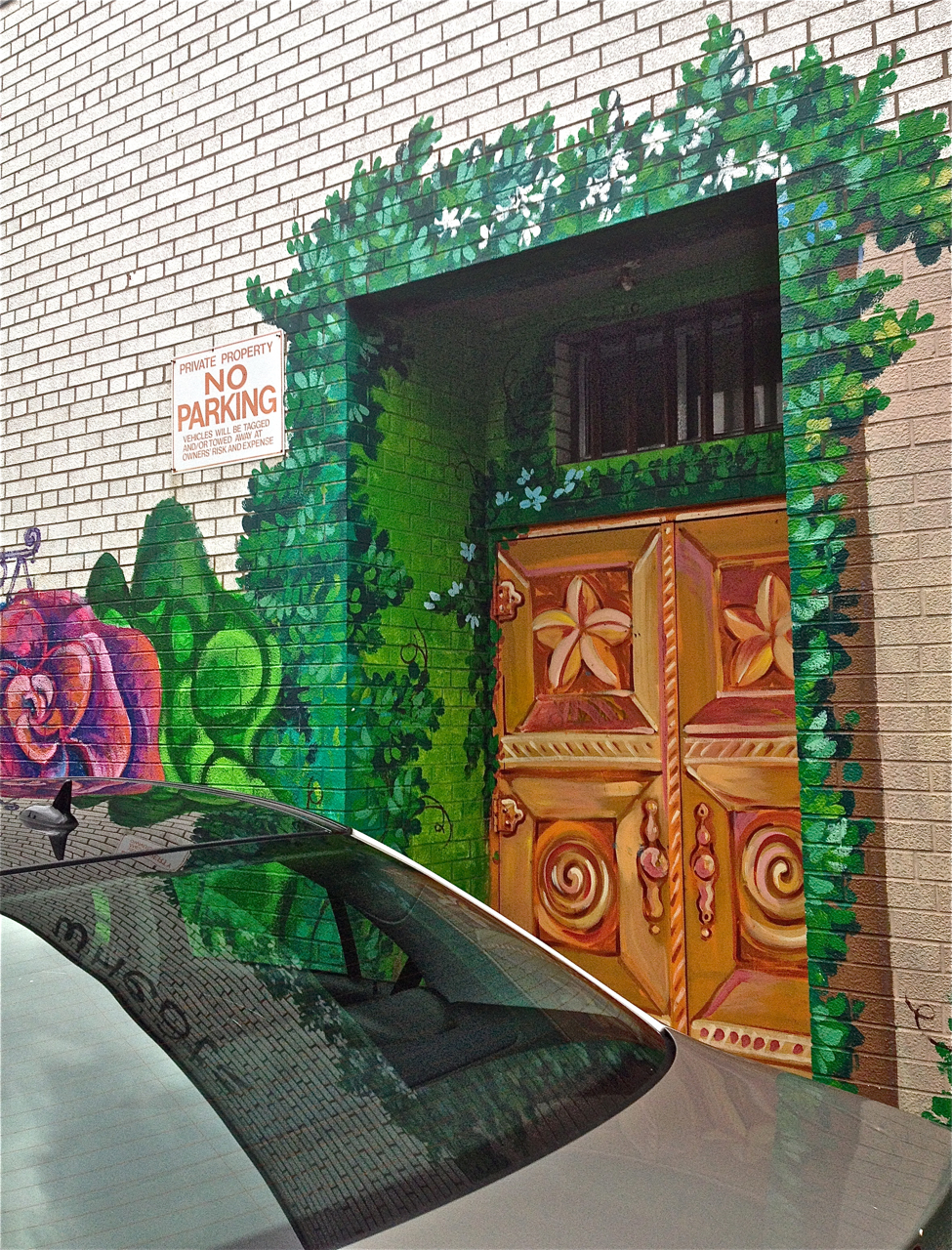In the few weeks since I spotted it, all but 2 of the roses have been scribbled over. A credible tagger would tag around, beside or near the art, but not in the center’s of the mural’s focal pieces.