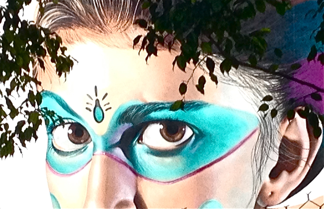 Who know what the artist thought? 😉 She looks like a bandit. Maybe she is going to steal one?