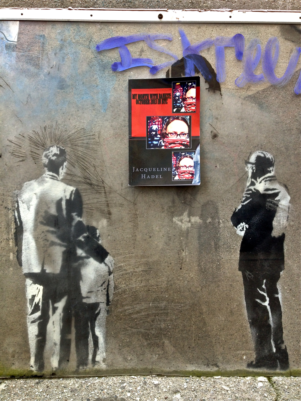 Aww, the gate was unlocked, so I just went in for a few shots of the Banksy w/ Jacqueline’s book.