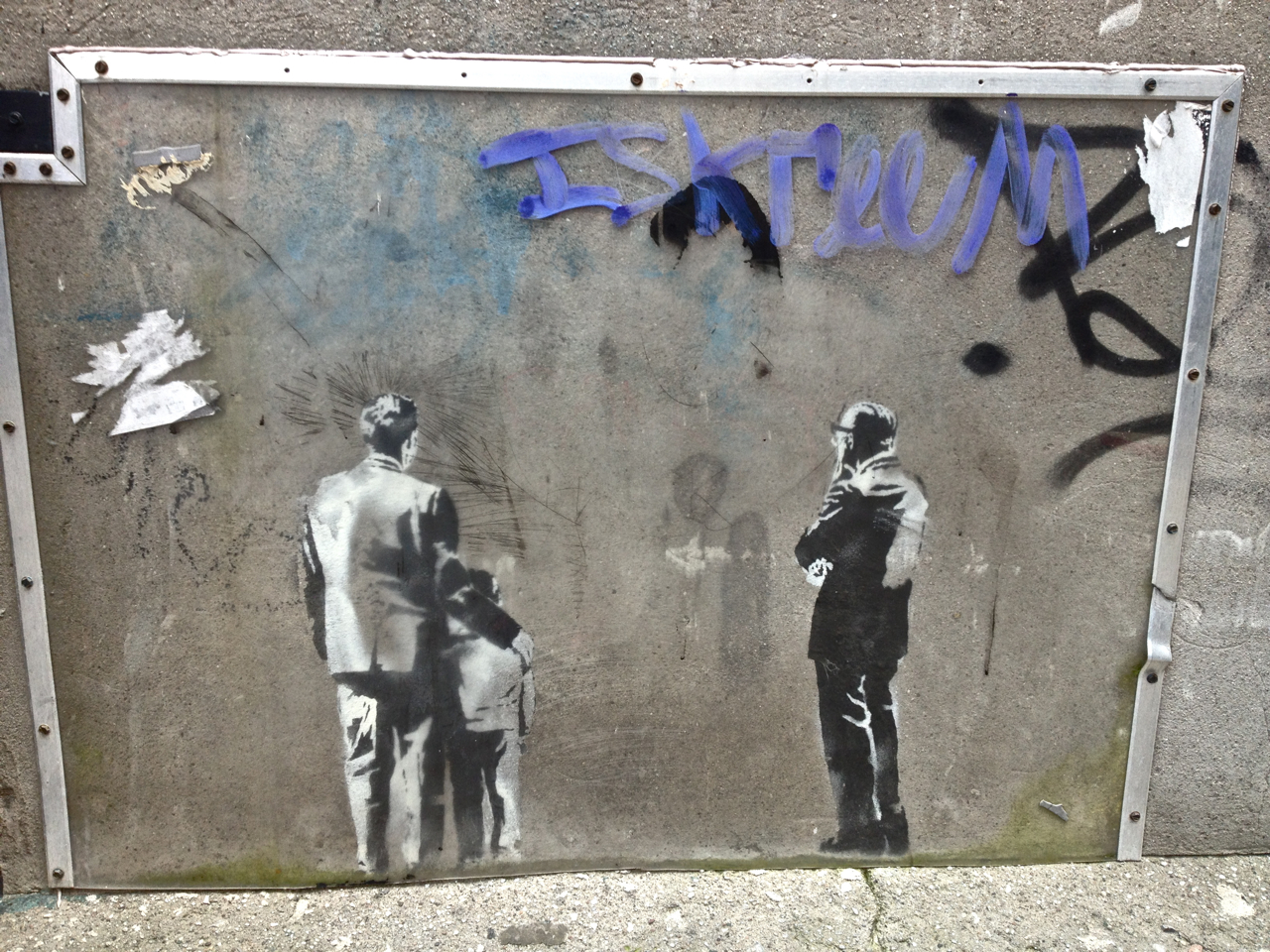 Exactly the same with the Banksy I saw in Paris. PLexi on top, but still taggers overpaint, scratch… What is it with people? 😦