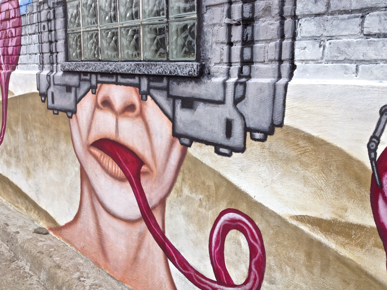 What strange but enticing artwork that is! I wonder if it’s a message to be careful what we say… I do like the bold colours though! Wow, you must have done a double-take when you came across that one 🙂