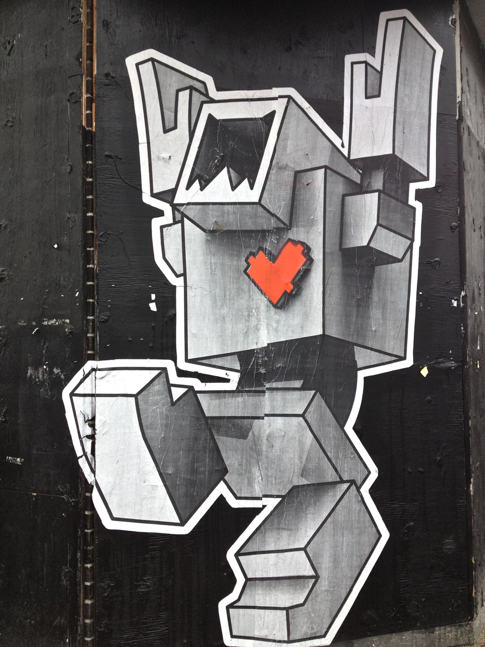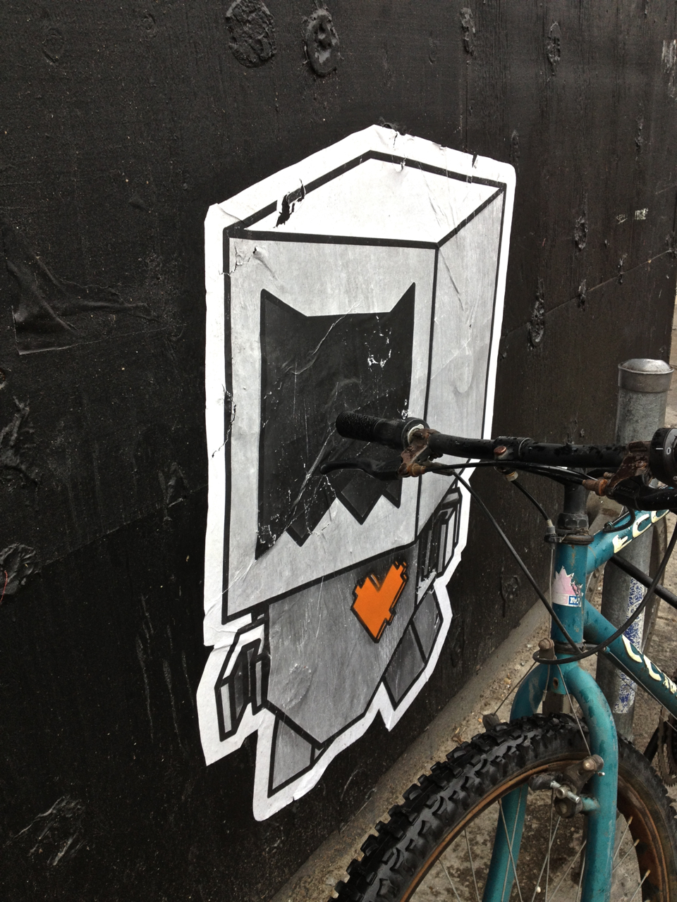 These Lovebots are one of the most interesting illegal graffiti to show up for awhile. There’s this sweet girl paste-up, but I haven’t gotten enough shots saved up yet!