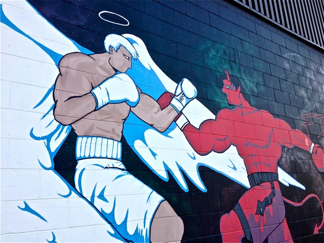 Interesting corner to say the least, but makes perfect sense under the fitness center advertisement! I do like the concept and of course the color makes perfect sense!
