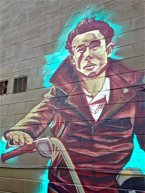 I believe you are right! I went to Google images, and found a pic just like this painting, except the real James Dean has a cigarette in his mouth.