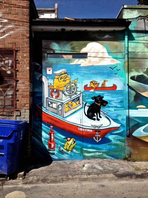 “Uber 5000” has painted this mini-mural in the alley of Queen W.