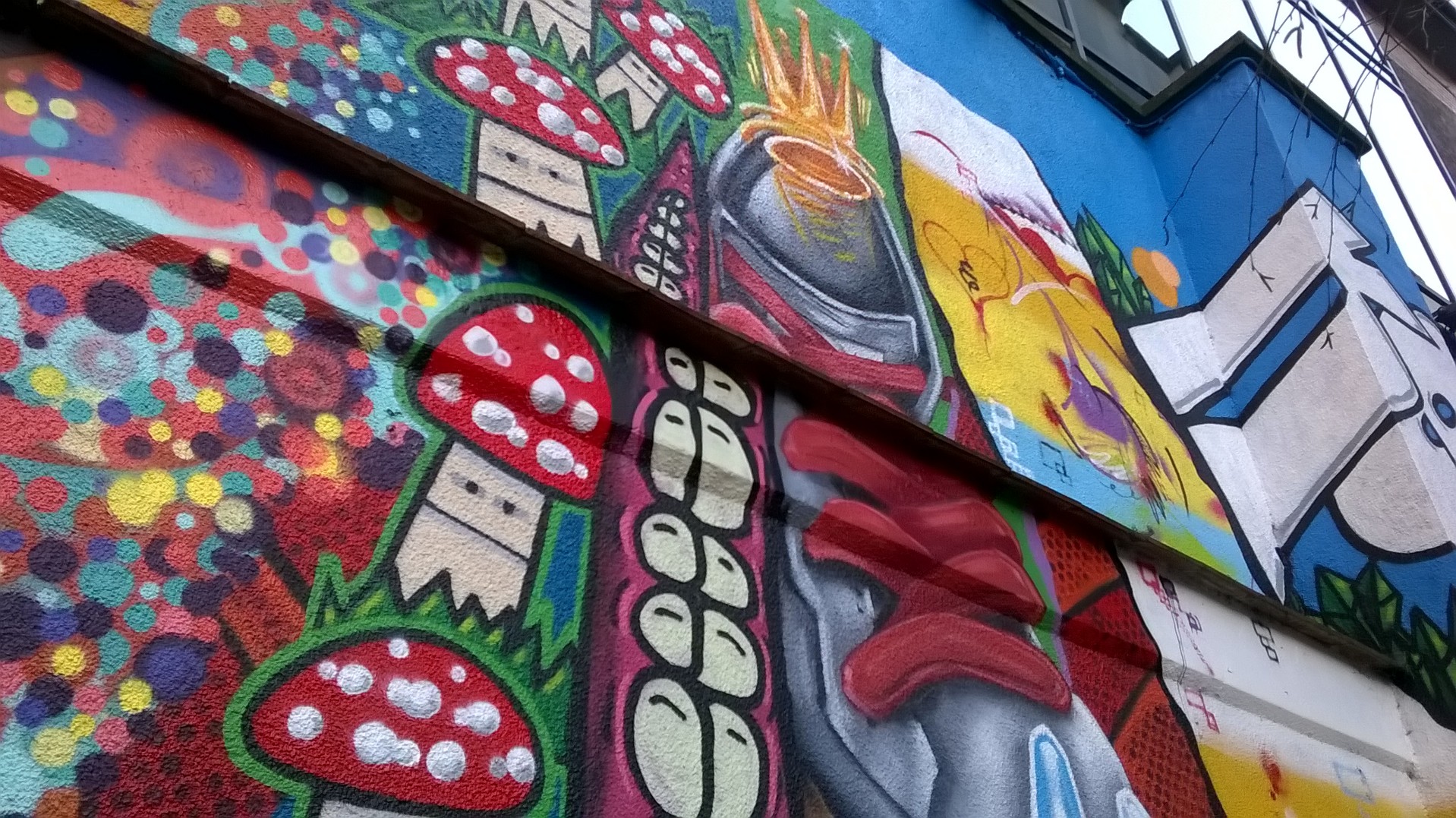 “On an adjoining wall to the entrance of the Broadway Cinema in Nottingham there is a vibrant and eye catching mix of images.”