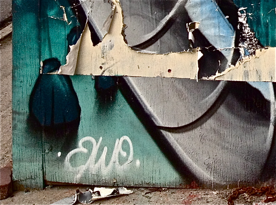 This looks so wonderfully gothic to me, I even think the peeling is a nice and unique detail that adds to the art (even though I wish all graffiti 100% saved, documented and preserved!)