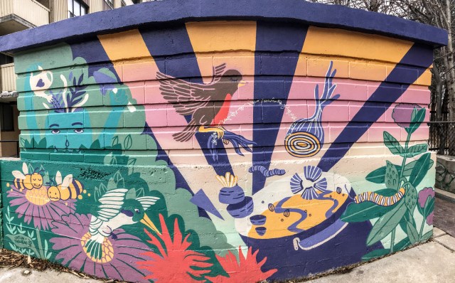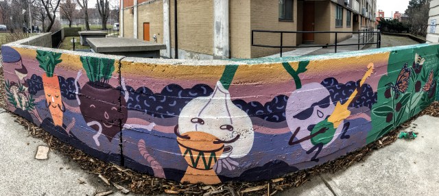 It is very cute artwork. It is in a high density, older high-rise apartment area, that has seen better days, It really helps brighten the area up for the young kids. 😀 ❤