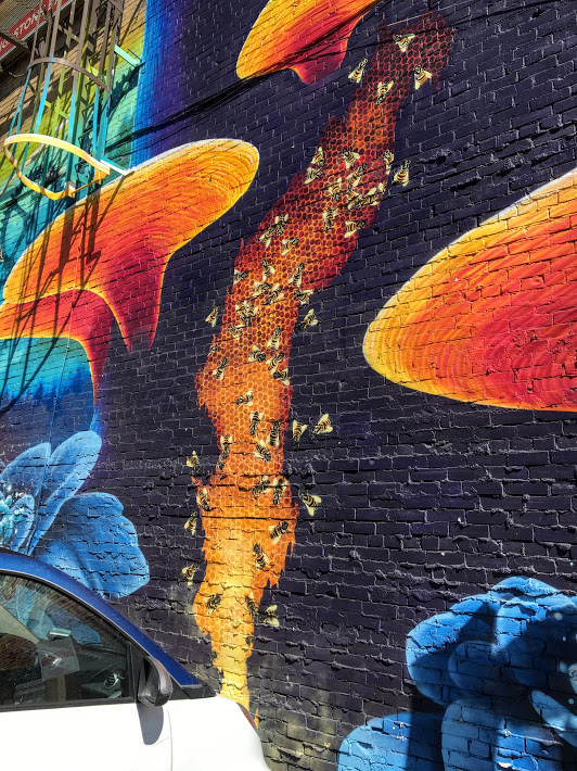 It is a gorgeous mural, and I hope this artist’s voice reaches many. Many are speaking for the bees right now. Our buzz seems barely heard.