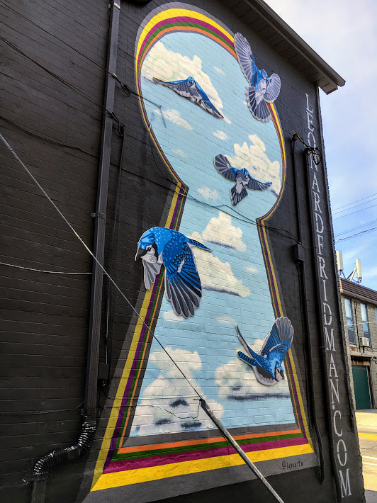 It’s like the birds are flying through a keyhole and straight into my heart ♥ ♥ I’m glad you didn’t stand out in traffic to get a longer shot of the 3-story mural, by the way!!