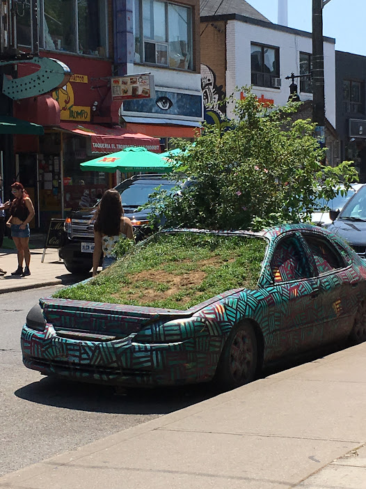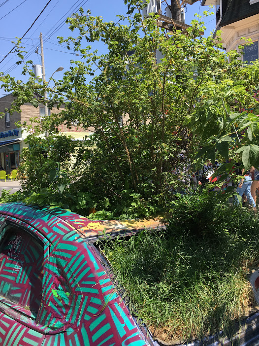 That car is awesome! It’s a “live” art as it is has fresh greenery in it! The paintjob is wacky-cool 🙂