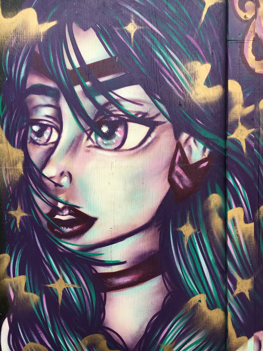 These 2 pieces painted side by side in Alley 18 could not be more different.