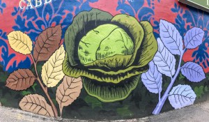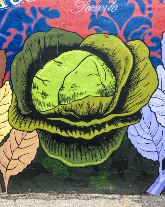 A cabbage head has so many layers — the artist did an admirable job of portraying all the layers and shadows. And the mural is so colorful, bright, and lively.