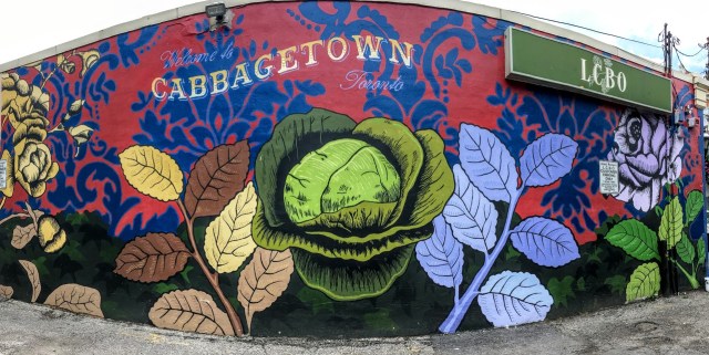 How beautiful the cabbage and cabbage roses (ornamental cabbage flower) and what great artistry to decorate a truly fabulous space. The LCBO are to be congratulated for their entrepreneurship; I’d love to see this wall whenever I parked… 🙂