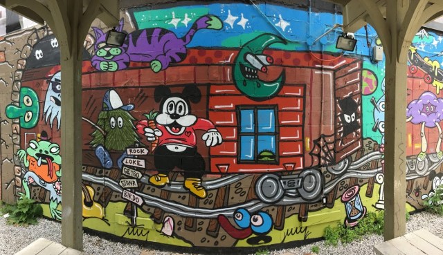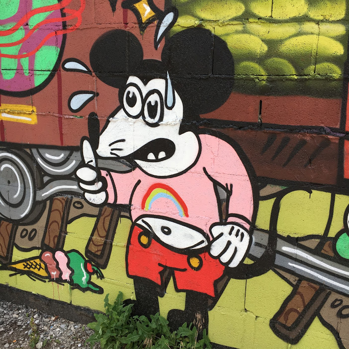Roger Rabbit was like a hyper stylized bugs.. in a way. We’ve got a Mickey Rat in this mural & other OTT characters. It took me a few days of wonder, but I’ve come to like this a lot! 😀