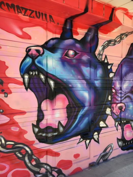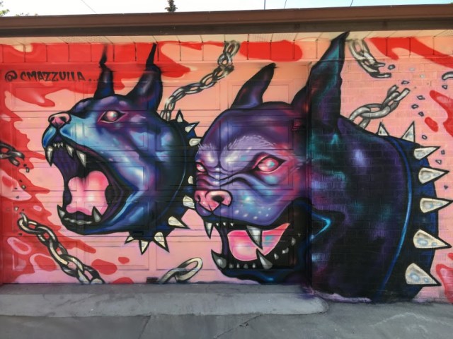 Snarrll, Snarrll! I found the dogs, and I also found an alley full new art! Barrk, Barrk!