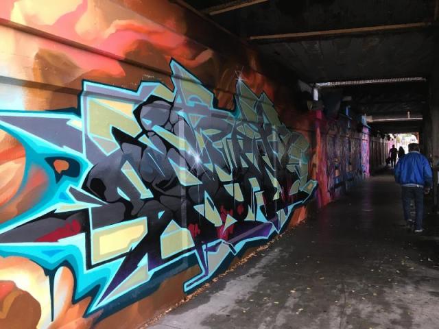 Then a biggie in pink, orange and blue take us to the end of the underpass.