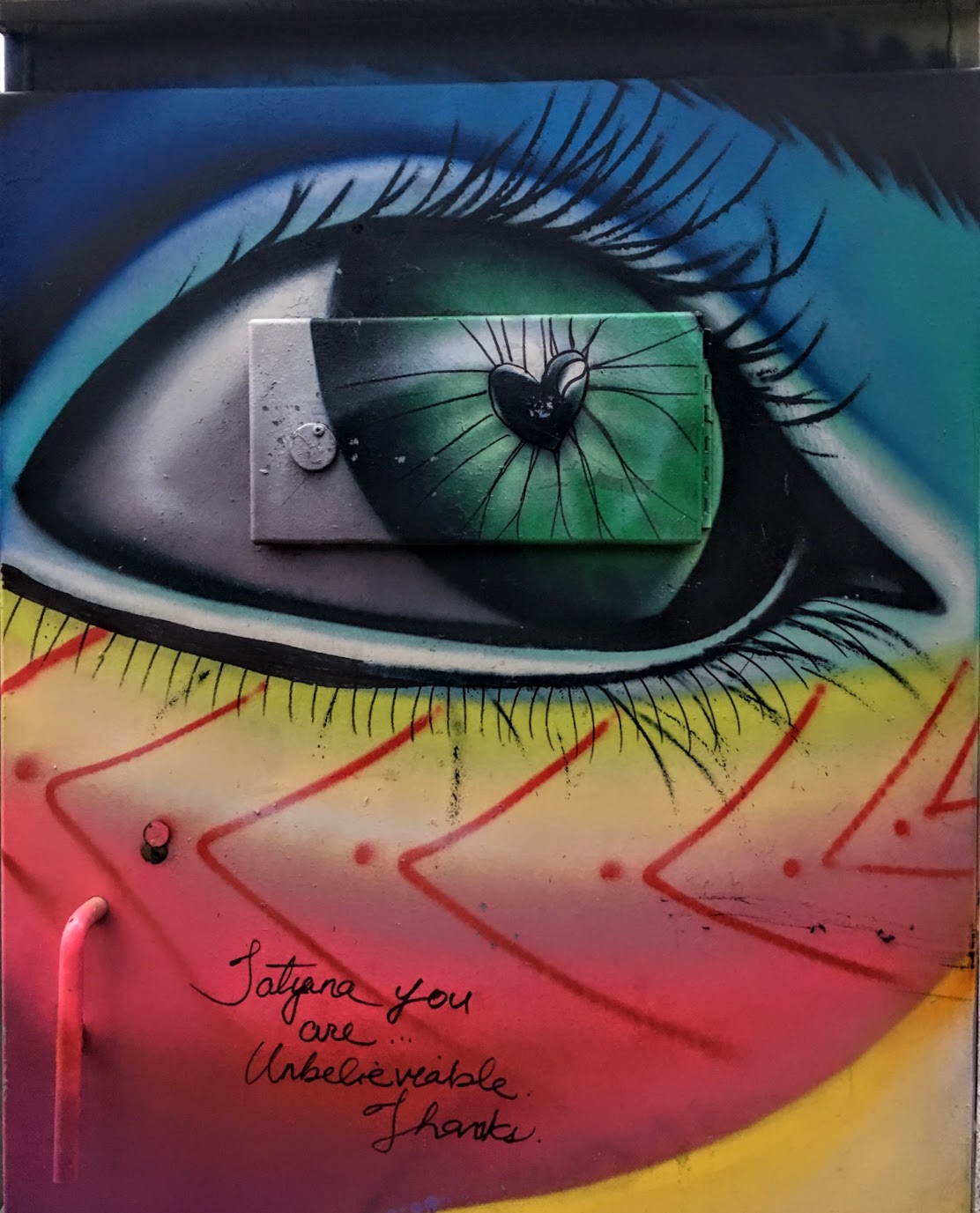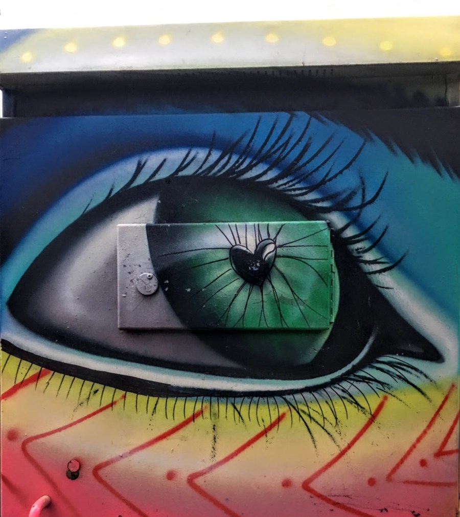 Street art rules, heart in eye! Heart… and I got to be in Uber 5000’s scissor lift today. I’m still dizzy!