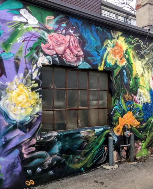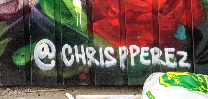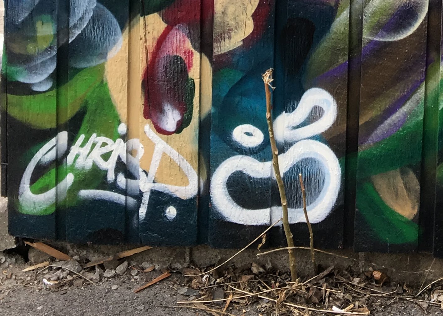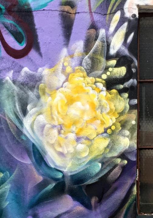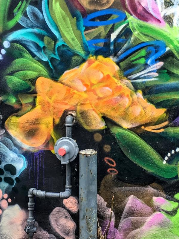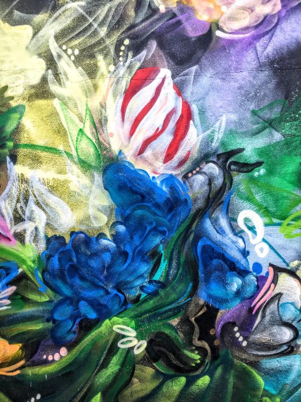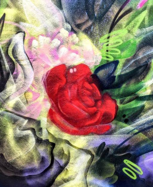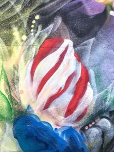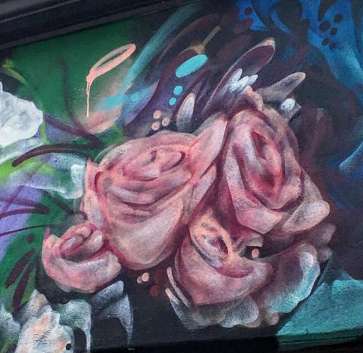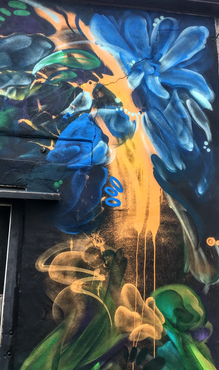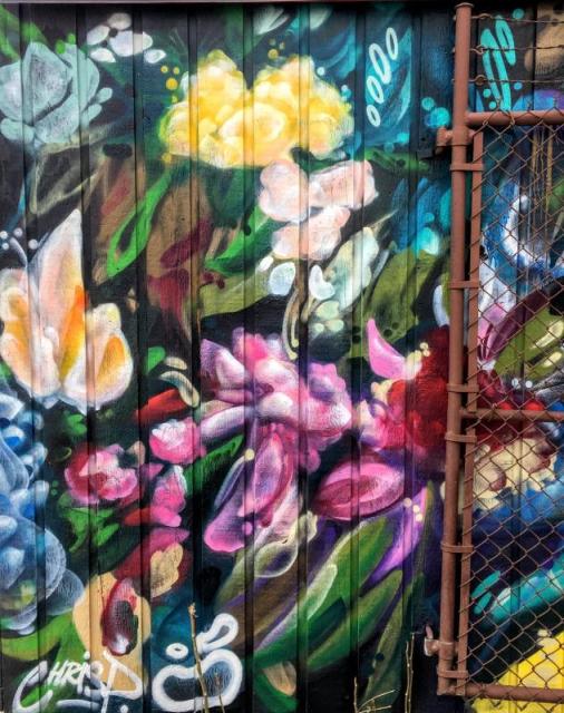 Chris Perez has covered 2 sides of what I would call a very large shack. He’s turned a vicious eyesore, into a thing of beauty with his abstract floral painting.