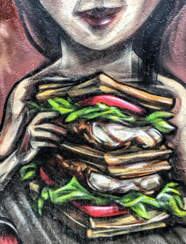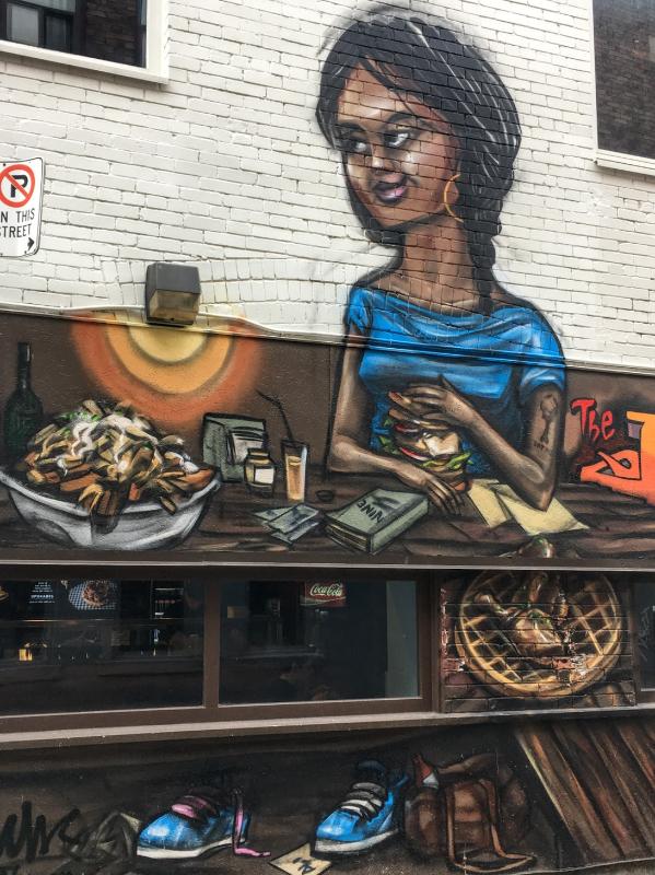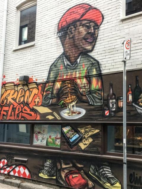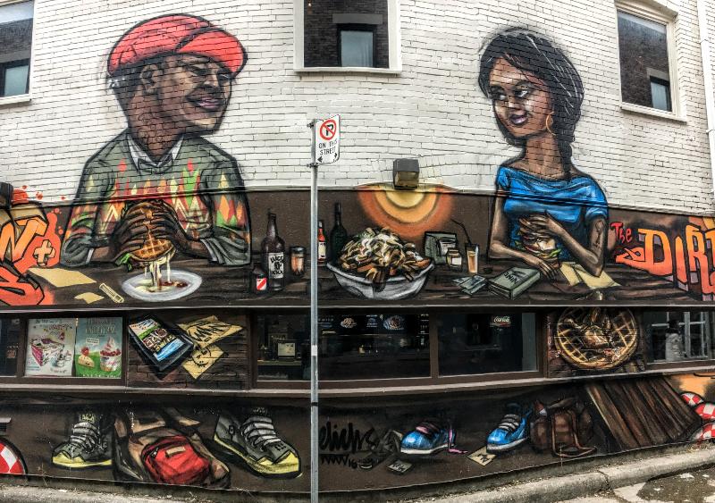The City may have paid for the paint, as Toronto has a program in place. The restaurant would have to pay the artist. Sometimes, people give a wall to an artist, the city donates the paint, and the artist donates his/her time for free. However, as this advertises the restaurant, I’m sure the Artist got paid, handsomely! 😀 xoxoxo