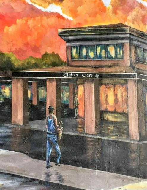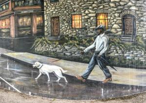 How wonderful. I love the white dog. The cars are excellent. Another excellent mural.