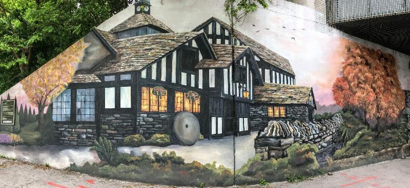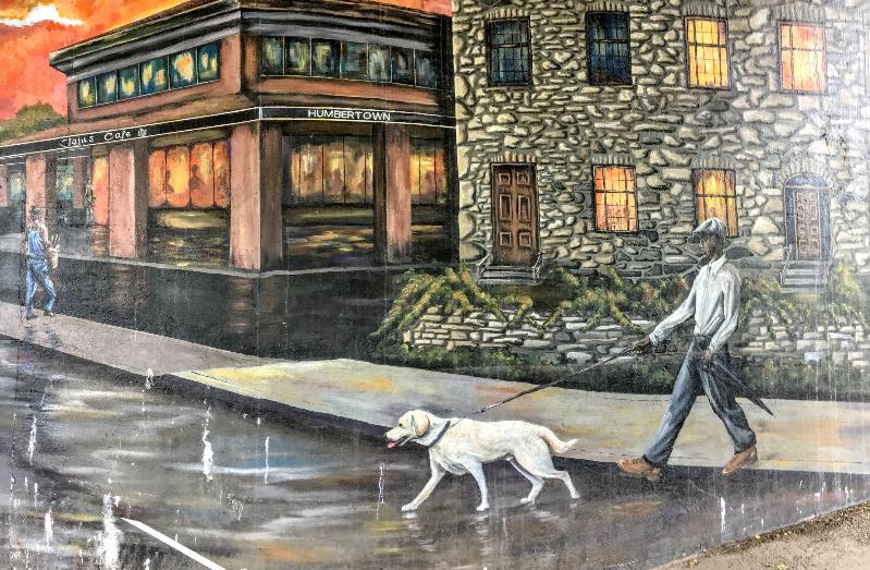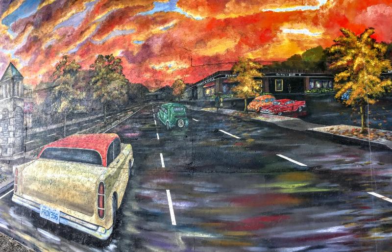How wonderful. I love the white dog. The cars are excellent. Another excellent mural.