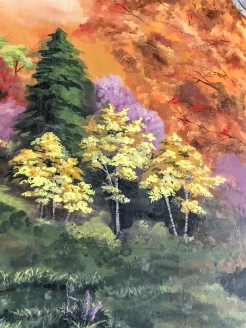 That one seriously concentrating fisherman. I love the detailing and colours of the trees, very Bob Ross.