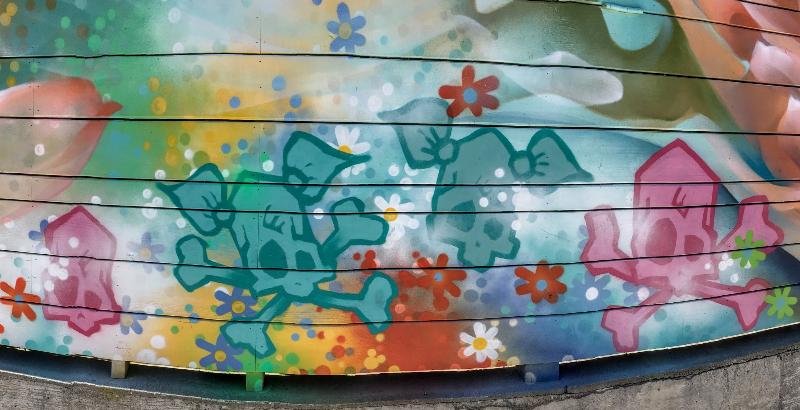 Beautiful flowers and cute little skulls, what a great combo 🙂 It’s such a great feeling, discovering unexpected art. I found a little dragon here the other day. It was so cool! I didn’t expect there to be much street art here in Swindon since it’s a small town, but you never know, I might post something on it.