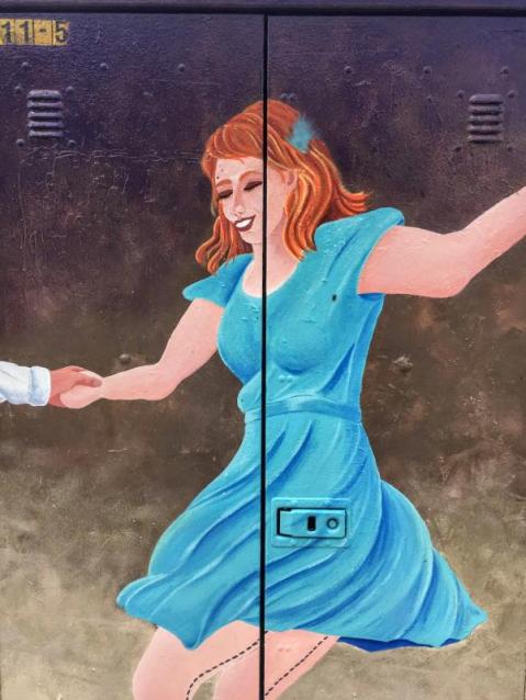 Let me spin you round, starting on the south side of the box, which is a female sax player. I adore the silhouette style.
