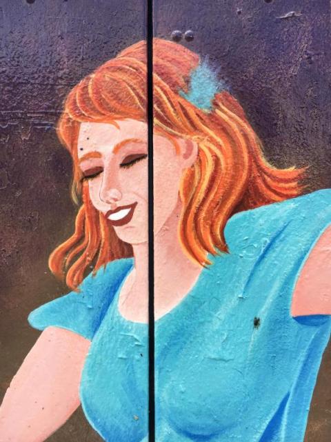 This is totally fun! I love the way the artist made the art fit the boxes. It makes for an interesting perspective of the large woman dancing with a tiny man. 🙂