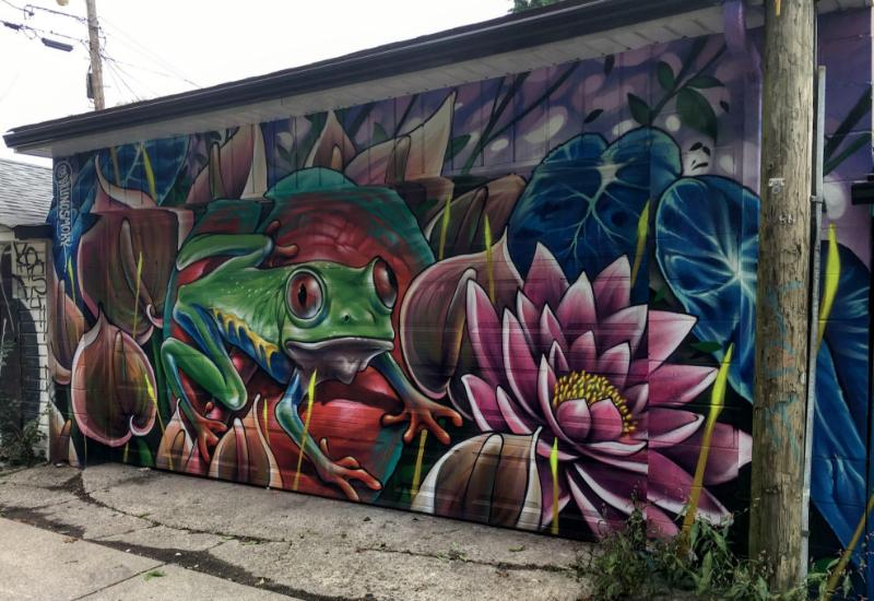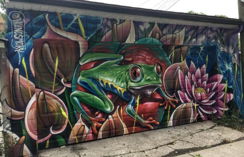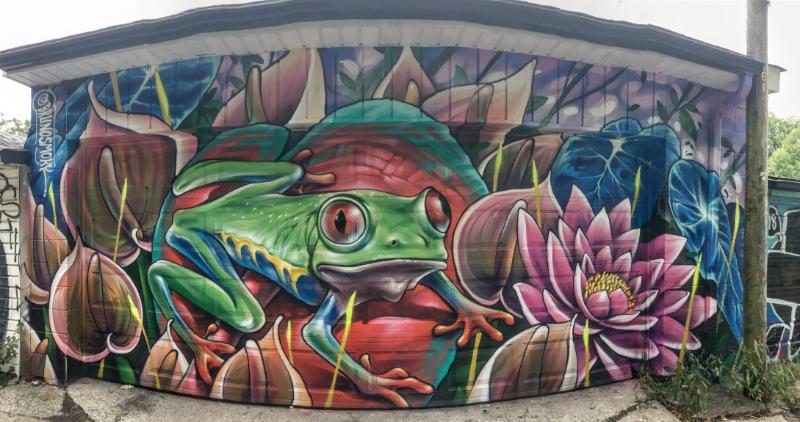 Whimsy…. what a fab word for this.It also describes Bruno’s work in general. I heard about this garage door, and vowed to find it! I knew the general area. 3 hours, and 2 sore feet later, BINGO! Ribbit! Ribbit! 🐸❤️🐸
