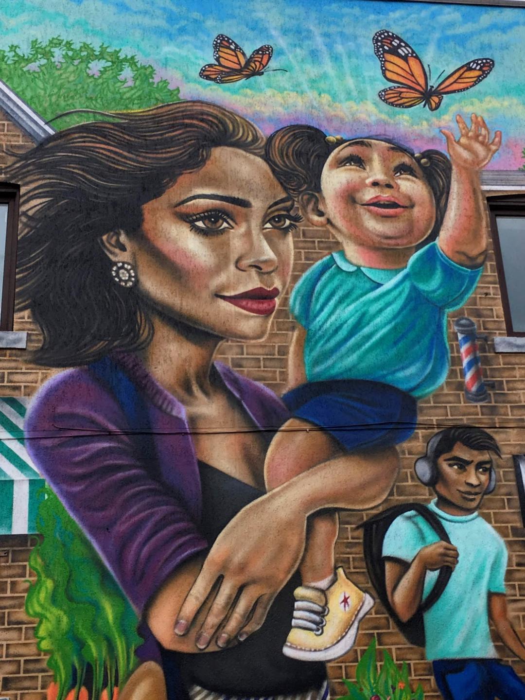 It truly is a wonderful mural! It’s not an edgy alley piece, but a sweet, out on a semi major street, where everyone in the community can enjoy it. Not everyone likes to walk in the alleys, like I do.