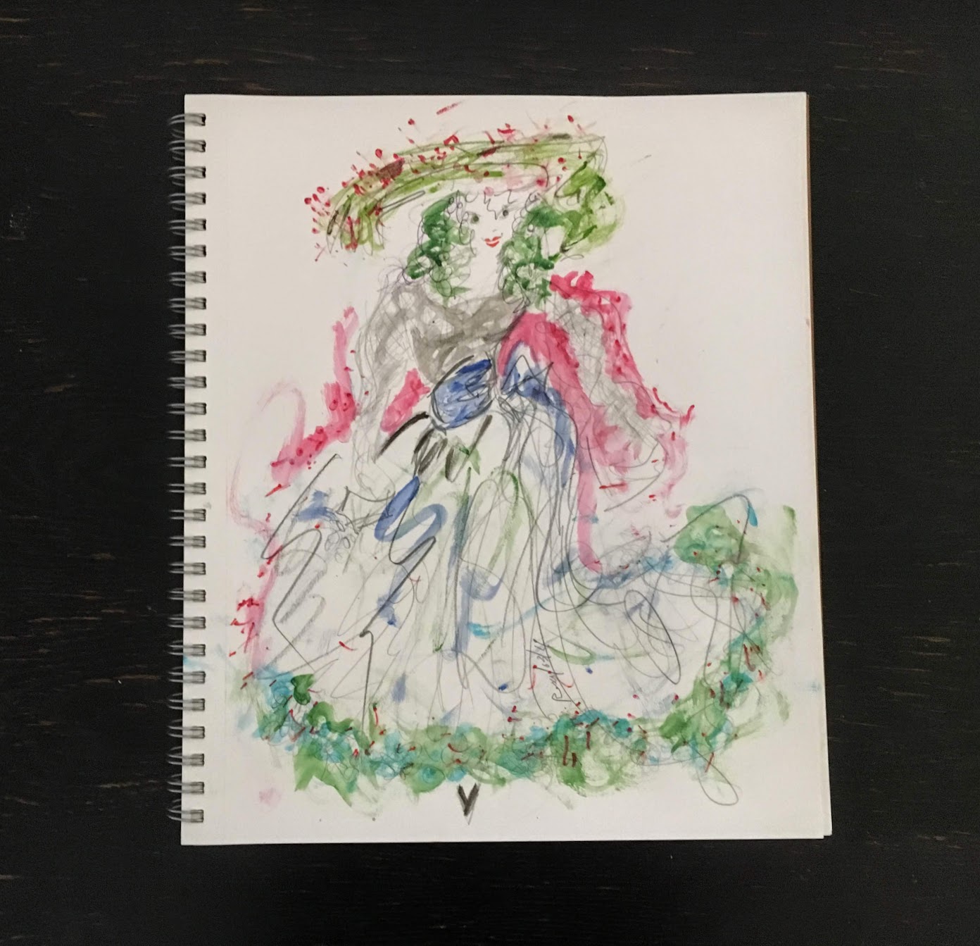 Once or twice a week, varying professional musicians jam in the space below me. The music pours up through the old wood floors, and fills my apartment. Holly Lightly My Art Gown sketches are a bit stiff these days. To loosen up, I decided to draw with the music. No erasing! Just do and go … Continue reading Crazy Free Art to Music