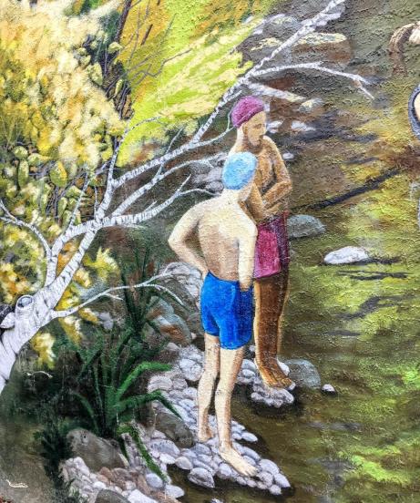 Great mural dear Resa. At least it is down the creek and not up the creek without a paddle. Love from all of us xoxoxo ❤