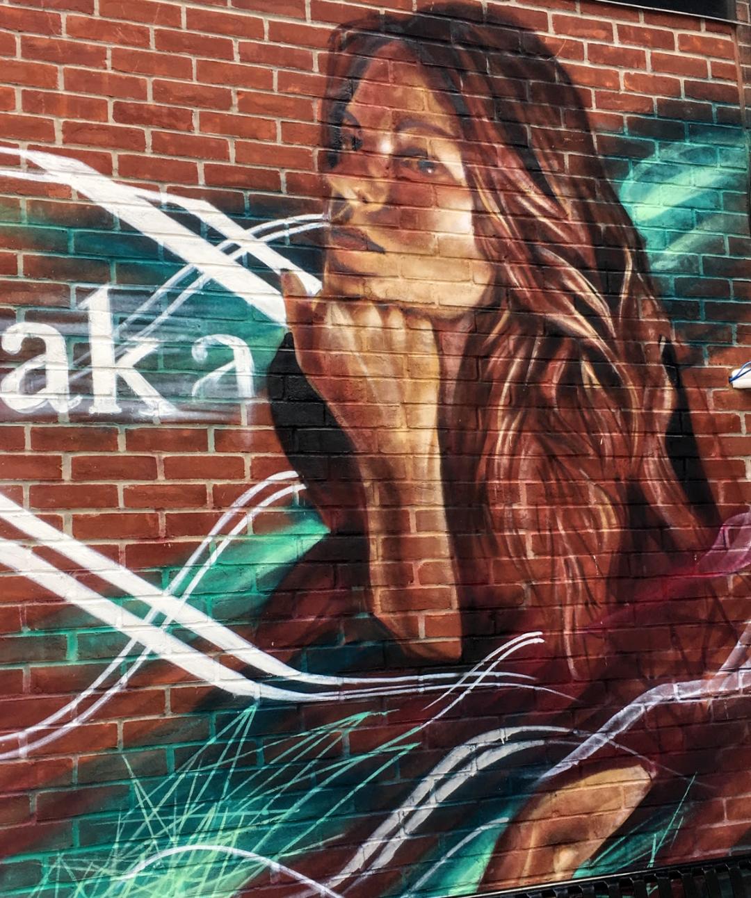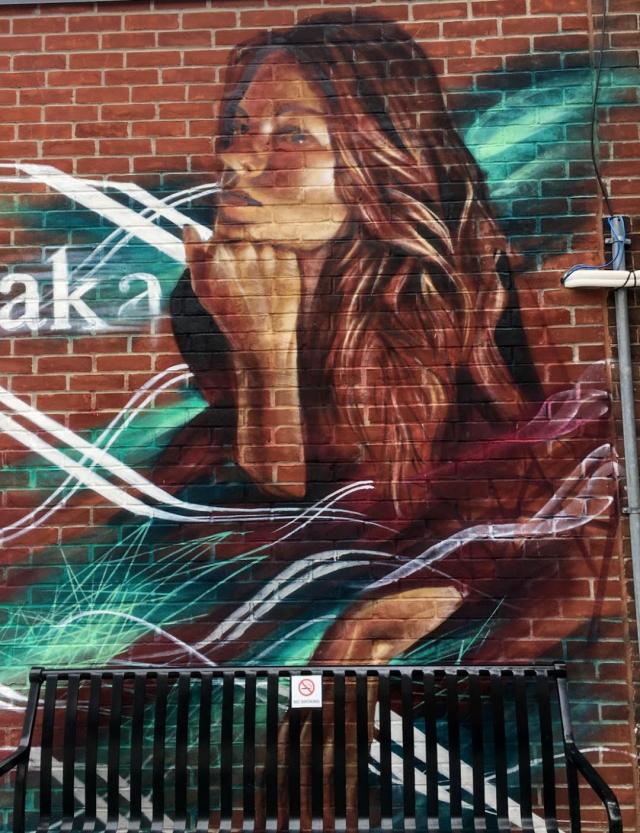 Yeah, her nose! It must be difficult to paint on brick. Still, she’s beautiful.