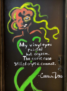 This is the 3rd Street Art Poetry door Charlie and I have done together, even though we live 2,520 miles away from each other, and have only met in the blogosphere. MAKE ART NOT WAR