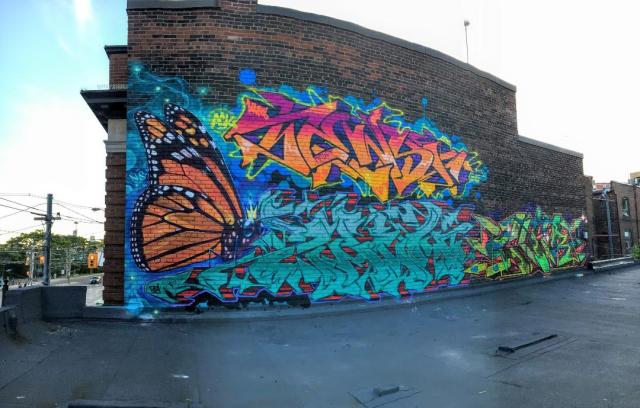 I think this mural is pretty safe from tags. The guys who did the writing/burners are well known in the alleys!