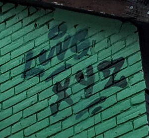 The cat head forms out of the green and orange graffiti art swirls that I’ve capture a bit of.I love it! :DX