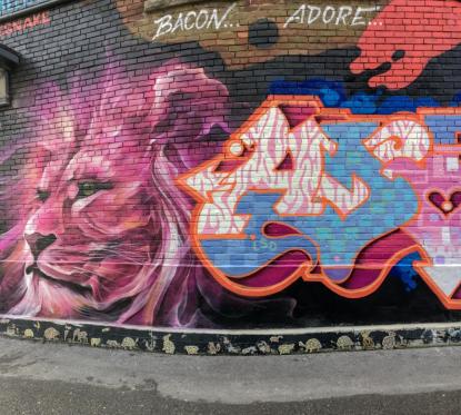 It was a lucky lion for me! When I found him, I found more art in the same alley!