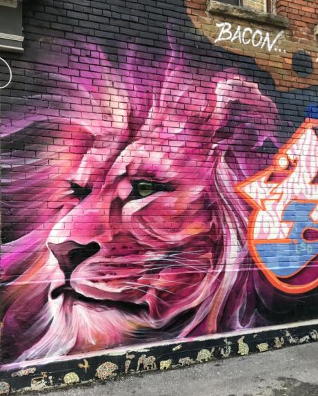 This is such a powerful lion that a very talented artist has painted. I’m sure Bacon painted the lion, and Adore did the writing.