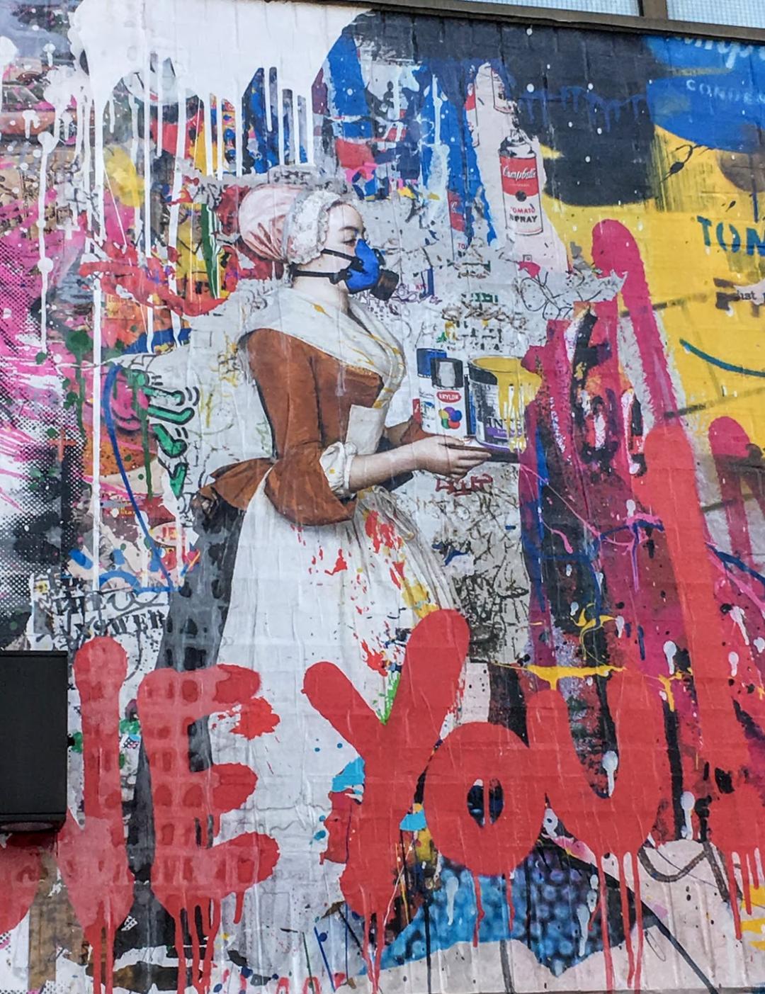 I love this, so full of life and pop culture. I am glad an above commentor knew who the mystery woman was, I couldn’t think of her name despite her being very familiar. Kate Moss should have been easy to remember. There is so much going on in this mural that it must be a pleasure for those who walk past on their way to work.